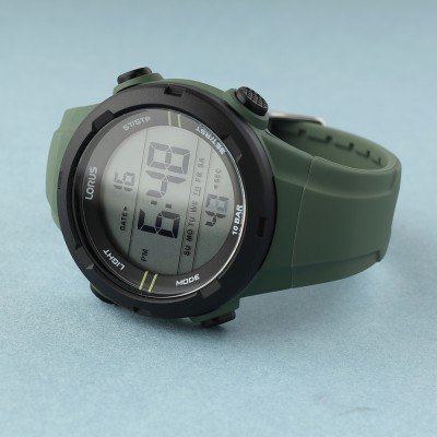 Este relógio Lorus tem uma caixa de Resina com um diâmetro de 46 mm e está equipado com uma bracelete de borracha. A caixa possui um movimento Seiko Instruments Inc. e o relógio tem um vidro Acrílico.