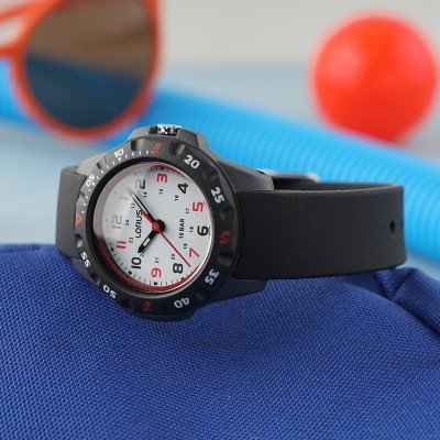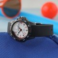 Este relógio Lorus tem uma caixa de Resina com um diâmetro de 29.5 mm e está equipado com uma bracelete de borracha. A caixa possui um movimento Seiko e o relógio tem um vidro Acrílico.