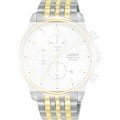 Esta bracelete de relógio Lorus é feita de aço inoxidável e está fixada ao relógio através de pinos de pressão. A bracelete tem uma largura de 22 mm e fecha através de fivela dobrável com botões de pressão. A bracelete não tem uma montagem a direito, o que significa que esta bracelete só é adequada para os relógios listados abaixo.