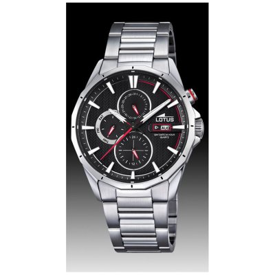 Esta bracelete de relógio Lotus é feita de aço inoxidável e está fixada ao relógio através de pinos de pressão. A bracelete tem uma largura de 23 mm e fecha através de fivela dobrável com botões de pressão. A bracelete não tem uma montagem a direito, o que significa que esta bracelete só é adequada para os relógios listados abaixo.