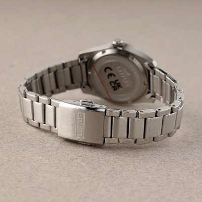Este relógio Lotus tem uma caixa de Inox com um diâmetro de 32 mm e está equipado com uma bracelete de Inox. A caixa possui um movimento Miyota e o relógio tem um vidro Mineral.