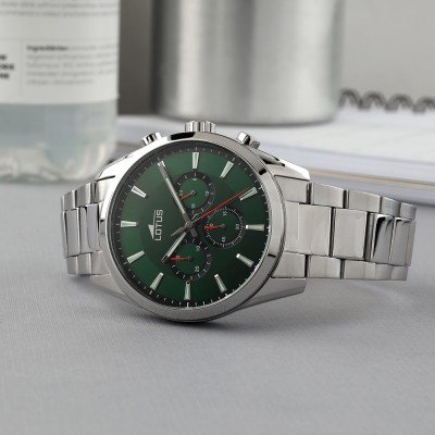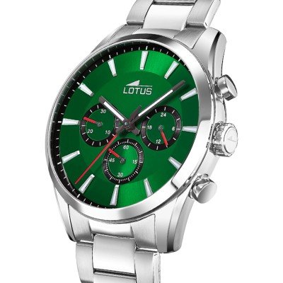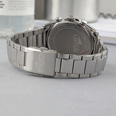Este relógio Lotus tem uma caixa de Inox com um diâmetro de 42 mm e está equipado com uma bracelete de Inox. A caixa possui um movimento Miyota e o relógio tem um vidro Mineral.