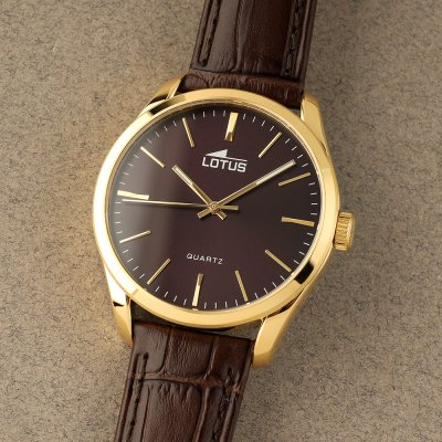 Este relógio Lotus tem uma caixa de Inox com um diâmetro de 42 mm e está equipado com uma bracelete de couro. A caixa possui um movimento Miyota e o relógio tem um vidro Mineral.