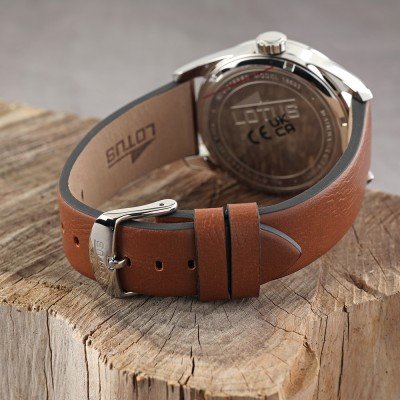 Este relógio Lotus tem uma caixa de Inox com um diâmetro de 42 mm e está equipado com uma bracelete de couro. A caixa possui um movimento Miyota e o relógio tem um vidro Mineral.
