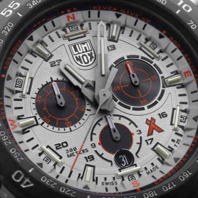 Este relógio Luminox tem uma caixa de Carbono com um diâmetro de 45 mm e está equipado com uma bracelete de borracha. A caixa possui um movimento Ronda e o relógio tem um vidro Safira.