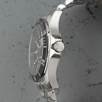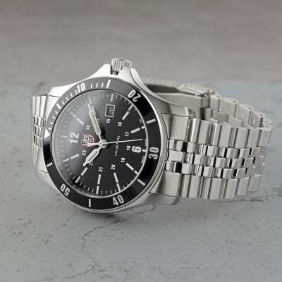 Este relógio Luminox tem uma caixa de Inox com um diâmetro de 42 mm e está equipado com uma bracelete de Inox. A caixa possui um movimento Ronda e o relógio tem um vidro Safira.
