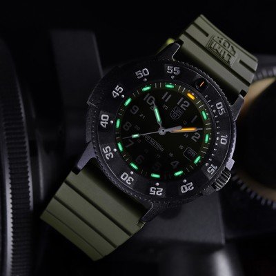 Este relógio Luminox tem uma caixa de Carbono com um diâmetro de 43 mm e está equipado com uma bracelete de borracha. A caixa possui um movimento Ronda e o relógio tem um vidro Mineral resist.