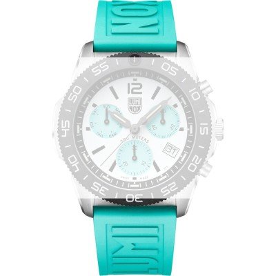 Esta bracelete de relógio Luminox é feita de borracha e está fixada ao relógio através de pinos carregados por mola de liberação rápida. A bracelete tem uma largura de 24 mm e fecha através de fivela dobrável com botões de pressão e segurança. A bracelete tem uma montagem a direito, o que significa que esta bracelete é adequada para todos os relógios Luminox com montagem da bracelete a direito.