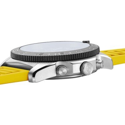 Este relógio Luminox tem uma caixa de Inox com um diâmetro de 44 mm e está equipado com uma bracelete de borracha. A caixa possui um movimento Ronda e o relógio tem um vidro Safira.