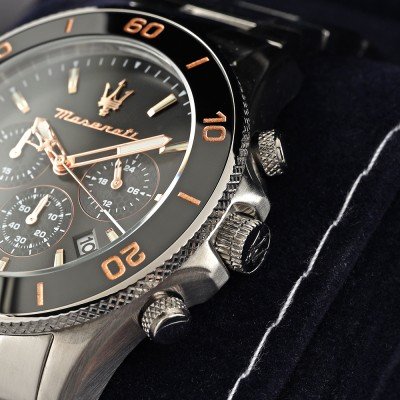 Este relógio Maserati tem uma caixa de Inox com um diâmetro de 43 mm e está equipado com uma bracelete de Inox. A caixa possui um movimento Miyota e o relógio tem um vidro Mineral.