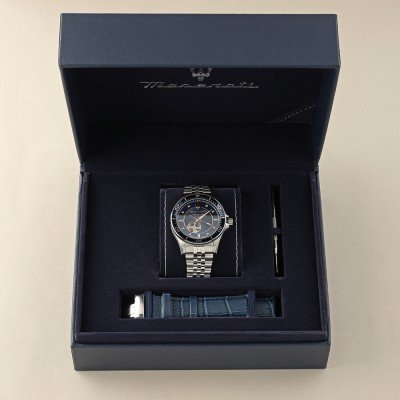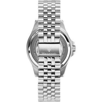 Este relógio Maserati tem uma caixa de Inox com um diâmetro de 44 mm e está equipado com uma bracelete de Inox. A caixa possui um movimento Seiko Instruments Inc. e o relógio tem um vidro Safira.