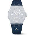 Esta bracelete de relógio Maurice Lacroix é feita de borracha e está fixada ao relógio através de pinos carregados por mola de liberação rápida. A bracelete tem uma largura de 23 mm. A bracelete não tem uma montagem a direito, o que significa que esta bracelete só é adequada para os relógios listados abaixo.