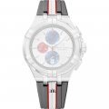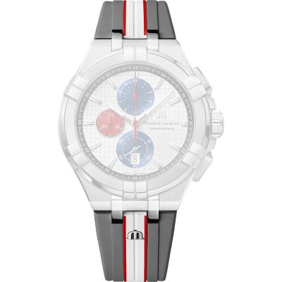 Esta bracelete de relógio Maurice Lacroix é feita de borracha e está fixada ao relógio através de pinos carregados por mola de liberação rápida. A bracelete tem uma largura de 23.5 mm. A bracelete não tem uma montagem a direito, o que significa que esta bracelete só é adequada para os relógios listados abaixo.