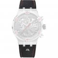 Esta bracelete de relógio Maurice Lacroix é feita de couro e está fixada ao relógio através de pinos carregados por mola de liberação rápida. A bracelete tem uma largura de 25 mm. A bracelete não tem uma montagem a direito, o que significa que esta bracelete só é adequada para os relógios listados abaixo.