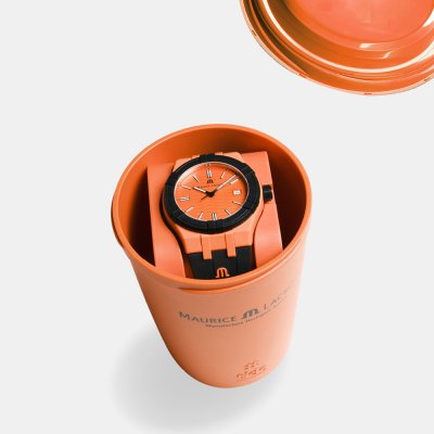 Este relógio Maurice Lacroix tem uma caixa de Plástico maré oceânica com um diâmetro de 40 mm e está equipado com uma bracelete de borracha. A caixa possui um movimento Ronda e o relógio tem um vidro Safira dupla anti-reflexo.