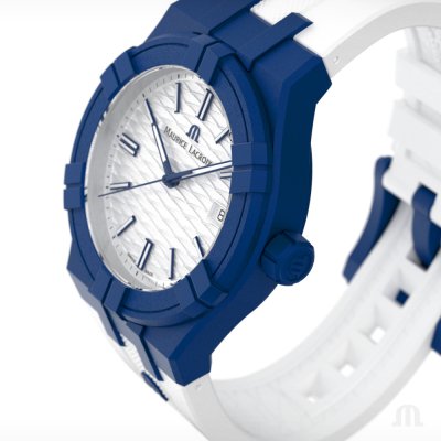 Este relógio Maurice Lacroix tem uma caixa de Plástico maré oceânica com um diâmetro de 40 mm e está equipado com uma bracelete de borracha. A caixa possui um movimento Ronda e o relógio tem um vidro Safira dupla anti-reflexo.