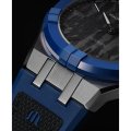 Este relógio Maurice Lacroix tem uma caixa de Aço inoxidável e cerâmica com um diâmetro de 43 mm e está equipado com uma bracelete de borracha. A caixa possui um movimento Sellita e o relógio tem um vidro Safira.
