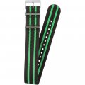 Esta bracelete de relógio Maurice Lacroix é feita de tecido e está fixada ao relógio através de pinos de pressão. A bracelete tem uma largura de 22 mm. A bracelete tem uma montagem a direito, o que significa que esta bracelete é adequada para todos os relógios Maurice Lacroix com montagem da bracelete a direito.