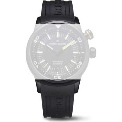 Esta bracelete de relógio Maurice Lacroix é feita de borracha e está fixada ao relógio através de pinos carregados por mola de liberação rápida. A bracelete tem uma largura de 22 mm. A bracelete não tem uma montagem a direito, o que significa que esta bracelete só é adequada para os relógios listados abaixo.