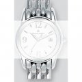 Esta bracelete de relógio Maurice Lacroix é feita de aço inoxidável e está fixada ao relógio através de pinos de pressão. A bracelete tem uma largura de 21 mm e fecha através de fivela dobrável com botões de pressão. A bracelete não tem uma montagem a direito, o que significa que esta bracelete só é adequada para os relógios listados abaixo.