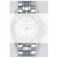 Esta bracelete de relógio Maurice Lacroix é feita de aço inoxidável e está fixada ao relógio através de pinos de pressão. A bracelete tem uma largura de 16 mm e fecha através de fivela dobrável com botões de pressão. A bracelete não tem uma montagem a direito, o que significa que esta bracelete só é adequada para os relógios listados abaixo.