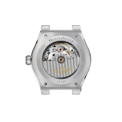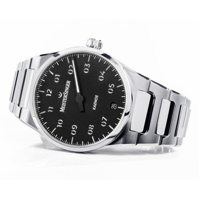 Este relógio Meistersinger tem uma caixa de Inox com um diâmetro de 40 mm e está equipado com uma bracelete de Inox. A caixa possui um movimento Sellita e o relógio tem um vidro Safira.
