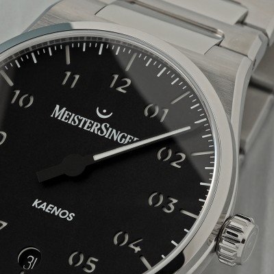 O nome "Kaenos" deriva da palavra grega "kainos", que significa "novo" ou "fresco". Também se refere ao Cenozoico - uma era de renovação na história da Terra. A Meistersinger chamou à sua mais recente série de relógios Kaenos, porque é uma interpretação completamente nova e fresca da identidade Meistersinger. É um relógio de aspeto moderno com uma bracelete integrada na moda e um mostrador limpo em forma de explosão solar. A família de relógios Kaenos está dividida em duas linhas: uma com uma data grande às 6 horas e a outra com um disco de data aberto. Pelo seu design, o Kaenos recebeu o prestigiado prémio iF Design Award 2025.