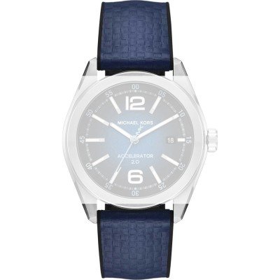 Esta bracelete de relógio Michael Kors é feita de silicone e está fixada ao relógio através de pinos de pressão. A bracelete tem uma largura de 22 mm e fecha através de fecho. A bracelete tem uma montagem a direito, o que significa que esta bracelete é adequada para todos os relógios Michael Kors com montagem da bracelete a direito.