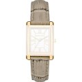 Esta bracelete de relógio Michael Kors é feita de couro e está fixada ao relógio através de pinos de pressão. A bracelete tem uma largura de 18 mm e fecha através de fecho. A bracelete tem uma montagem a direito, o que significa que esta bracelete é adequada para todos os relógios Michael Kors com montagem da bracelete a direito.