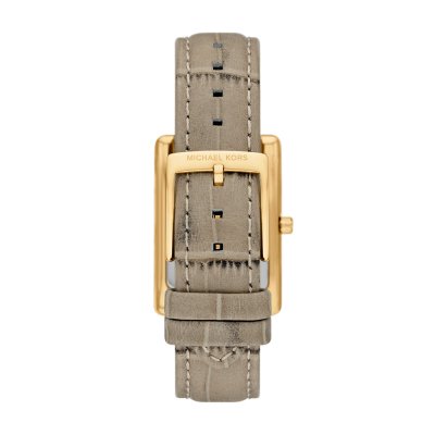 Este relógio Michael Kors tem uma caixa de Inox com um diâmetro de 26 mm e está equipado com uma bracelete de couro. A caixa possui um movimento Miyota e o relógio tem um vidro Mineral.