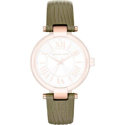 Esta bracelete de relógio Michael Kors é feita de couro e está fixada ao relógio através de parafuso de sela. A bracelete tem uma largura de 18 mm e fecha através de fecho. A bracelete não tem uma montagem a direito, o que significa que esta bracelete só é adequada para os relógios listados abaixo.