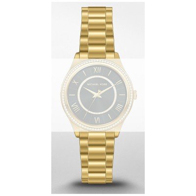 Esta bracelete de relógio Michael Kors é feita de aço inoxidável e está fixada ao relógio através de pinos de pressão. A bracelete tem uma largura de 16 mm e fecha através de fivela dobrável com botões de pressão. A bracelete não tem uma montagem a direito, o que significa que esta bracelete só é adequada para os relógios listados abaixo.