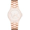 Esta bracelete de relógio Michael Kors é feita de aço inoxidável e está fixada ao relógio através de pinos em aço. A bracelete tem uma largura de 20 mm e fecha através de fivela dobrável com botões de pressão. A bracelete não tem uma montagem a direito, o que significa que esta bracelete só é adequada para os relógios listados abaixo.