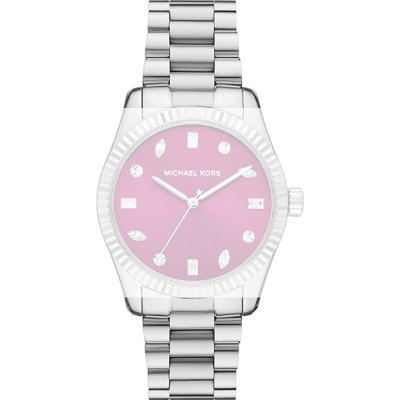 Esta bracelete de relógio Michael Kors é feita de aço inoxidável e está fixada ao relógio através de pinos de pressão. A bracelete tem uma largura de 20 mm e fecha através de fivela dobrável com botões de pressão. A bracelete não tem uma montagem a direito, o que significa que esta bracelete só é adequada para os relógios listados abaixo.