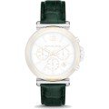 Esta bracelete de relógio Michael Kors é feita de couro e está fixada ao relógio através de parafuso de sela. A bracelete tem uma largura de 18 mm e fecha através de fecho. A bracelete não tem uma montagem a direito, o que significa que esta bracelete só é adequada para os relógios listados abaixo.