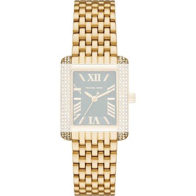 Esta bracelete de relógio Michael Kors é feita de aço inoxidável e está fixada ao relógio através de pinos de pressão. A bracelete tem uma largura de 18 mm e fecha através de fivela dobrável com botões de pressão. A bracelete não tem uma montagem a direito, o que significa que esta bracelete só é adequada para os relógios listados abaixo.