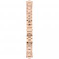 Esta bracelete de relógio Michael Kors é feita de aço inoxidável e está fixada ao relógio através de pinos em aço. A bracelete tem uma largura de 18 mm e fecha através de fivela dobrável com botões de pressão. A bracelete não tem uma montagem a direito, o que significa que esta bracelete só é adequada para os relógios listados abaixo.