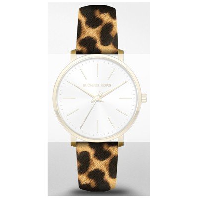 Esta bracelete de relógio Michael Kors é feita de couro e está fixada ao relógio através de pinos de pressão. A bracelete tem uma largura de 18 mm e fecha através de fecho. A bracelete tem uma montagem a direito, o que significa que esta bracelete é adequada para todos os relógios Michael Kors com montagem da bracelete a direito.