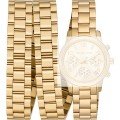 Esta bracelete de relógio Michael Kors é feita de aço inoxidável e está fixada ao relógio através de pinos de pressão. A bracelete tem uma largura de 16 mm e fecha através de fivela joalheria. A bracelete não tem uma montagem a direito, o que significa que esta bracelete só é adequada para os relógios listados abaixo.