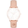 Esta bracelete de relógio Michael Kors é feita de couro e está fixada ao relógio através de pinos de pressão. A bracelete tem uma largura de 18 mm e fecha através de fecho. A bracelete tem uma montagem a direito, o que significa que esta bracelete é adequada para todos os relógios Michael Kors com montagem da bracelete a direito.