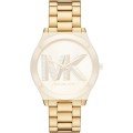 Esta bracelete de relógio Michael Kors é feita de aço inoxidável e está fixada ao relógio através de pinos de pressão. A bracelete tem uma largura de 20 mm e fecha através de fivela dobrável com botões de pressão. A bracelete não tem uma montagem a direito, o que significa que esta bracelete só é adequada para os relógios listados abaixo.