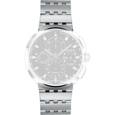 Esta bracelete de relógio MIDO é feita de aço inoxidável e está fixada ao relógio através de parafuso de sela. A bracelete tem uma largura de 25 mm e fecha através de fivela dobrável com botões de pressão. A bracelete não tem uma montagem a direito, o que significa que esta bracelete só é adequada para os relógios listados abaixo.