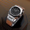O relógio Mido Multifort 8 Two Crowns é um revivalismo moderno da clássica linha de relógios dos anos 30 que estabeleceu a Mido como um relojoeiro de ferramentas a ter em conta. Nascido em 1934, o Multifort orgulhava-se de ser impermeável à água, ao pó e à ferrugem, resistente ao choque e antimagnético. O Mido Multifort 8 Two Crowns reinventa o legado do Multifort ao misturar TECNOLOGIA e GEOMETRIA, criando assim uma nova dimensão: TECNOMETRIA. O design do relógio é marcadamente geométrico, com ângulos e superfícies muito evidentes, com uma mistura magistral de polimento acetinado e espelhado, criando um aspeto muito distinto. O mostrador, com uma textura horizontal estampada em relevo, realça a sua profundidade e carácter. Uma aba interna faz parte integrante do design e retoma uma das funções do Multifort. É acionada pela segunda coroa situada às 2 horas. O relógio é acionado pelo Calibre 72 (baseado no movimento ETA A31.111), que inclui a tecnologia Nivachron™ para uma maior precisão e durabilidade, e proporciona umas impressionantes 72 horas de reserva de marcha. Esta última iteração do Multifort combina a herança com um design inovador, resultando num relógio equilibrado e fácil de usar com um toque funcional e desportivo.