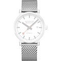 Esta bracelete de relógio Mondaine é feita de aço inoxidável e está fixada ao relógio através de pinos carregados por mola de liberação rápida. A bracelete tem uma largura de 20 mm e fecha através de fivela dobrável. A bracelete tem uma montagem a direito, o que significa que esta bracelete é adequada para todos os relógios Mondaine com montagem da bracelete a direito.