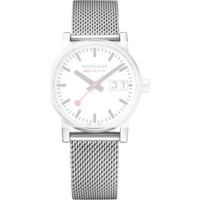 Esta bracelete de relógio Mondaine é feita de aço inoxidável e está fixada ao relógio através de pinos carregados por mola de liberação rápida. A bracelete tem uma largura de 16 mm e fecha através de fecho milanese. A bracelete tem uma montagem a direito, o que significa que esta bracelete é adequada para todos os relógios Mondaine com montagem da bracelete a direito.