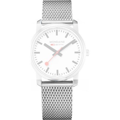 Esta bracelete de relógio Mondaine é feita de aço inoxidável e está fixada ao relógio através de pinos carregados por mola de liberação rápida. A bracelete tem uma largura de 20 mm e fecha através de fecho milanese. A bracelete tem uma montagem a direito, o que significa que esta bracelete é adequada para todos os relógios Mondaine com montagem da bracelete a direito.