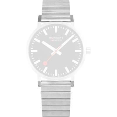 Esta bracelete de relógio Mondaine é feita de aço inoxidável e está fixada ao relógio através de pinos carregados por mola de liberação rápida. A bracelete tem uma largura de 20 mm e fecha através de fecho milanese. A bracelete tem uma montagem a direito, o que significa que esta bracelete é adequada para todos os relógios Mondaine com montagem da bracelete a direito.