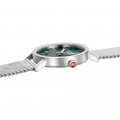 Este relógio Mondaine tem uma caixa de Inox com um diâmetro de 40 mm e está equipado com uma bracelete de metal. A caixa possui um movimento Ronda e o relógio tem um vidro Mineral.