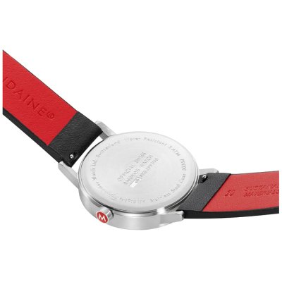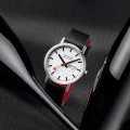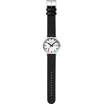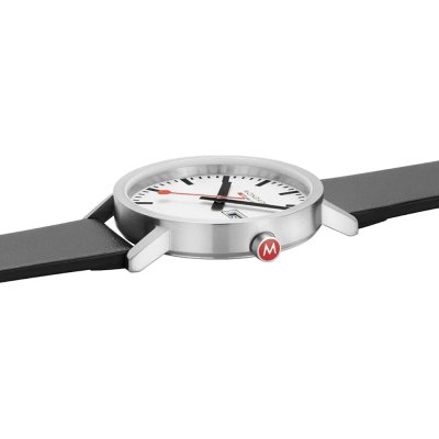 Este relógio Mondaine tem uma caixa de Inox com um diâmetro de 40 mm e está equipado com uma bracelete de Couro vegan. A caixa possui um movimento Ronda e o relógio tem um vidro Mineral resist.