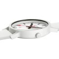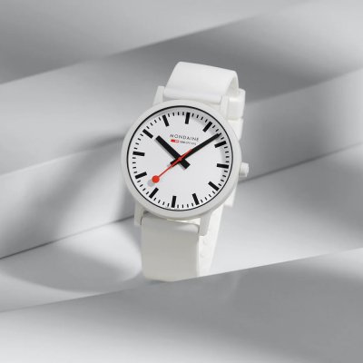 Este relógio Mondaine tem uma caixa de Resina com um diâmetro de 41 mm e está equipado com uma bracelete de Tecido. A caixa possui um movimento Ronda e o relógio tem um vidro Mineral resist.